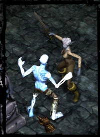 To engage in Melee (or hand-to-hand) combat, move your cursor over the monster you want to attack and left-click. Your character will move to the targeted monster and attack. Combat in Mythos is direct and real-time. This means that if you want to keep swinging at the same monster you can either click once for every swing or you can simply hold down the mouse button and you’ll continue to repeat the same attack. If you hold down the mouse button, your character is also now locked onto that monster. This means you will pursue and continue attacking it, even if your cursor moves off the targeted monster.